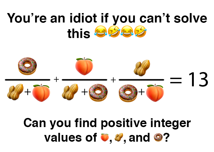 $ \frac{a}{b+c} + \frac{b}{a+c} + \frac{c}{a+b} = N = 13 $
