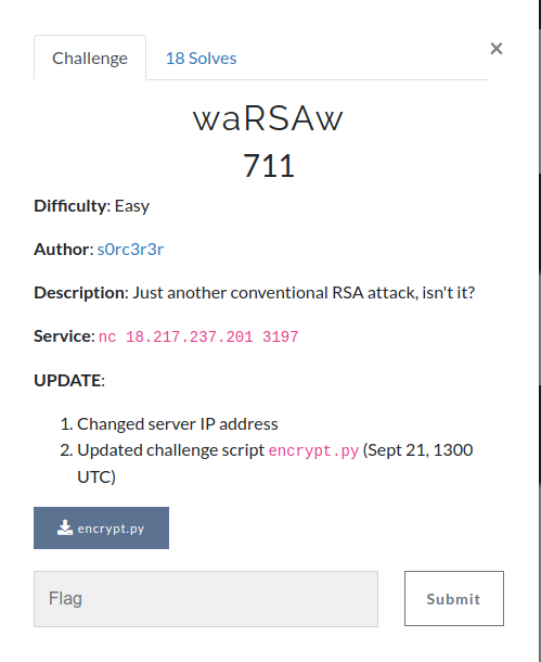 Intended solution of waRSAw challenge from InCTF Internationals 2019